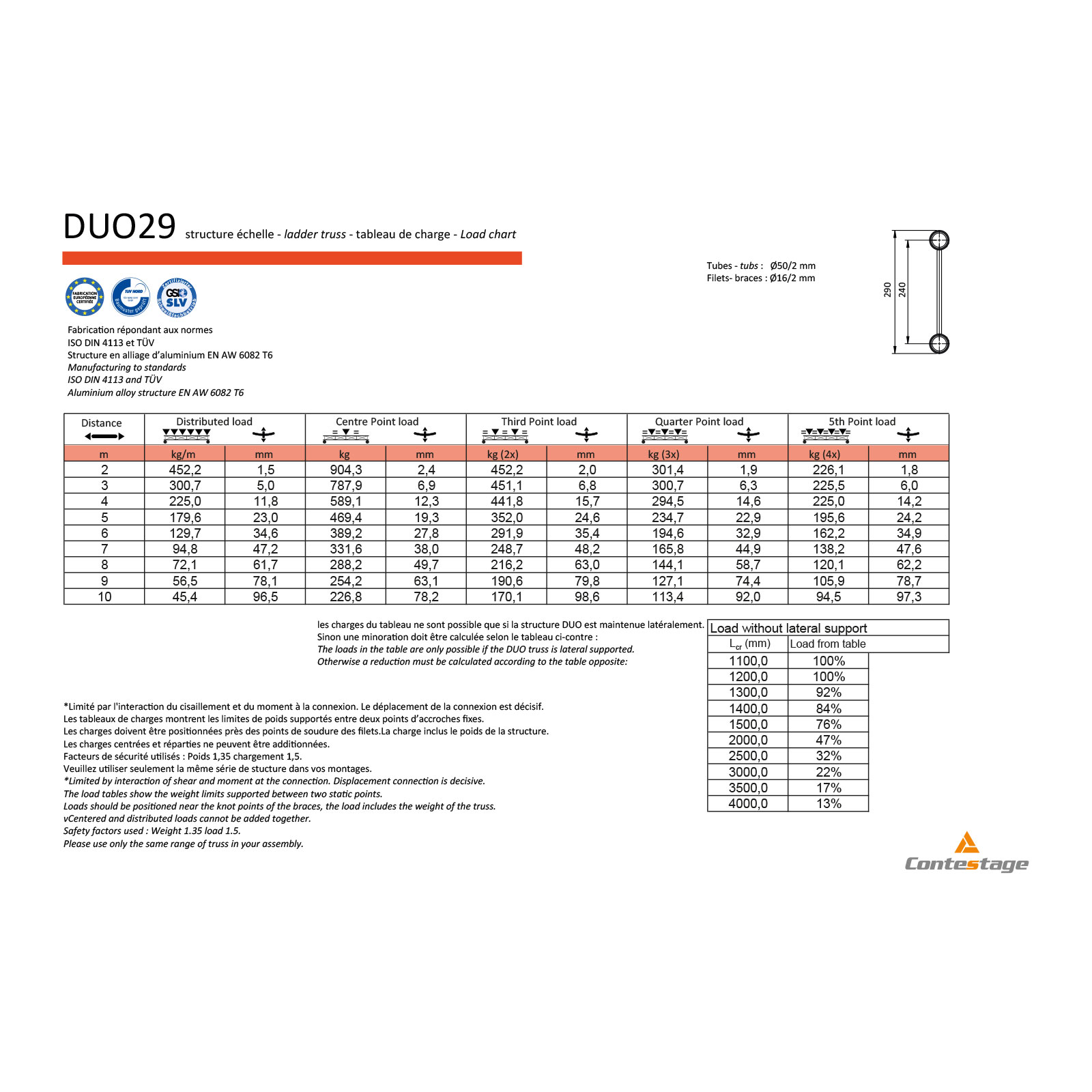 • Echelle de 240 mm d’entraxe entre chaque tube (290 mm extérieur)