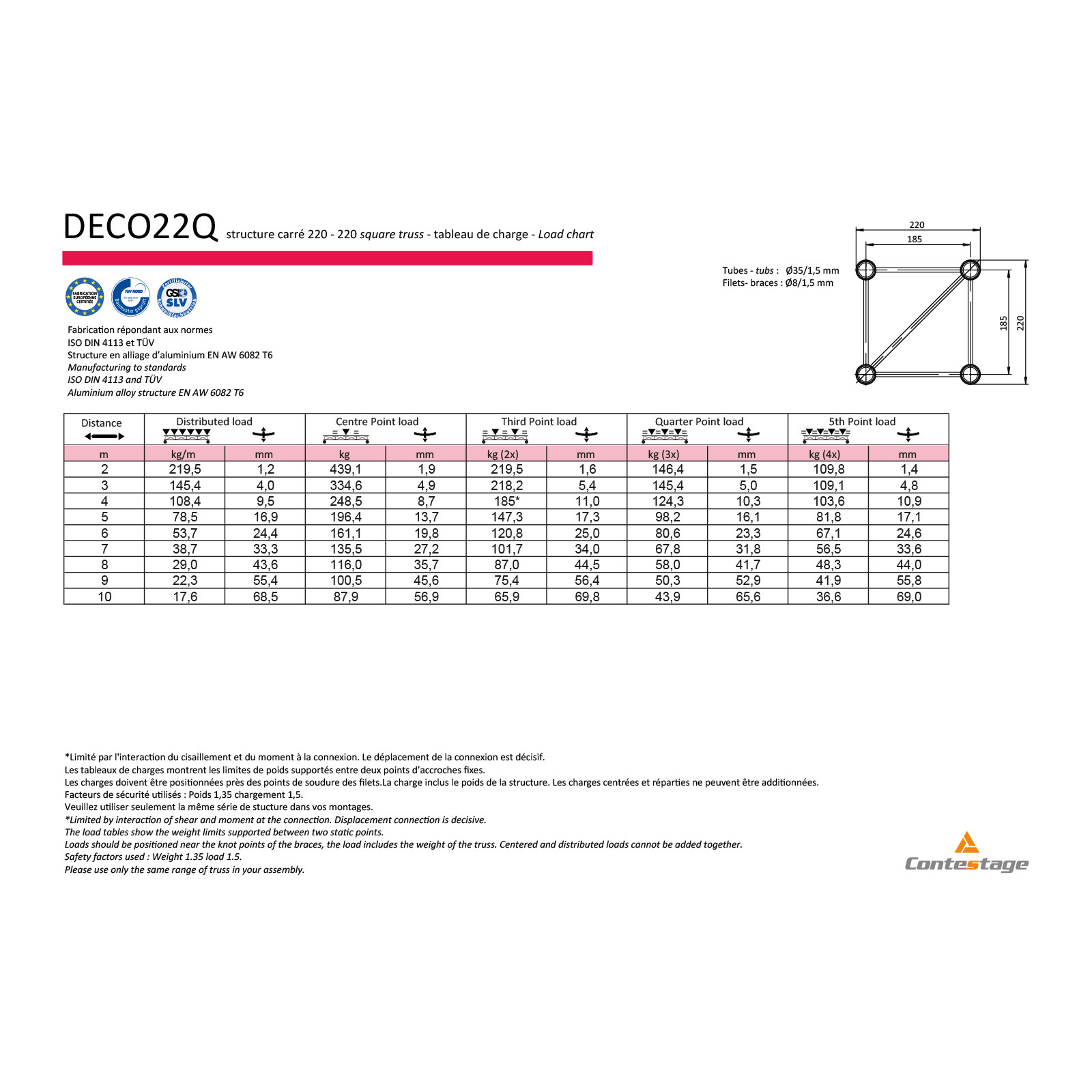Fabrication répondant aux normes ISO DIN 4113 et TÜV.